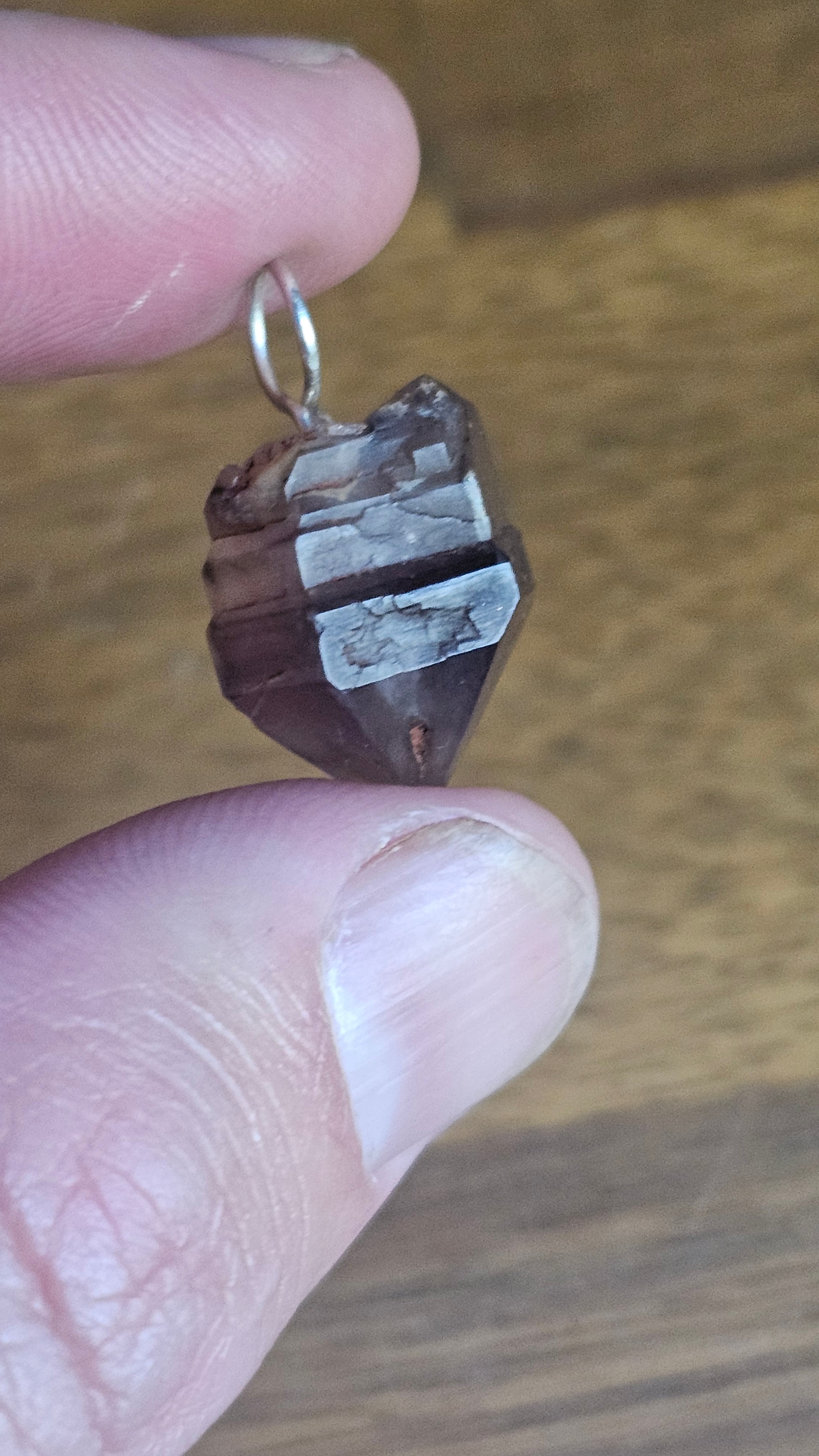 Mixed with a hint of smokey quartz, the stone is mounted on a 925 silver bail, waiting for you to add a chain, and show off this geological marvel.